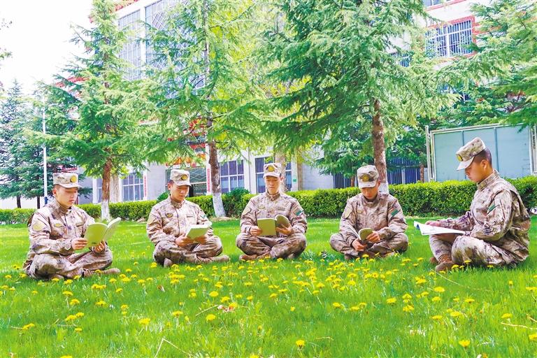 圖為(wei) 西藏拉薩警備區某團官兵利用休息之餘(yu) 在營區內(nei) 看書(shu) 。付枰凱 記者 趙文慧 攝