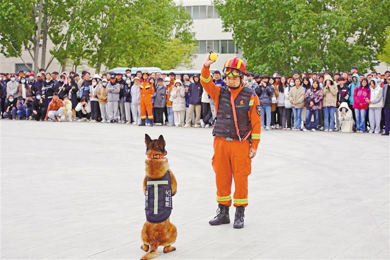 消防指戰員在西藏大學進行搜救犬表演。肖暄 攝