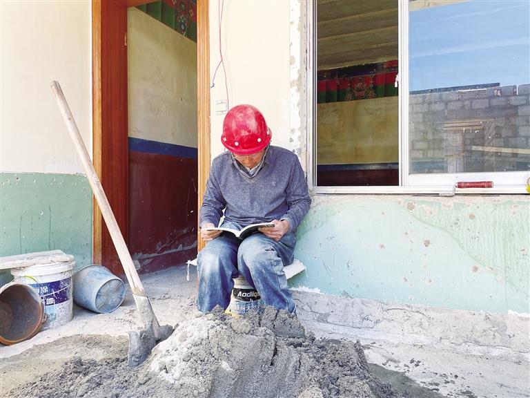 閑暇時,朔風在工地上看書(shu) 。文/圖 記者 趙越