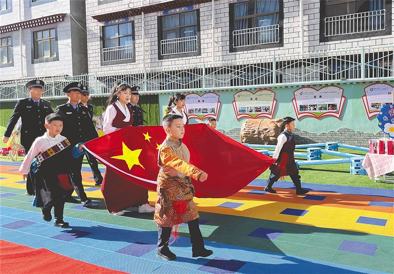 拉薩市實驗幼兒(er) 園東(dong) 城分園舉(ju) 行“唱國歌、升國旗”儀(yi) 式。記者 旦增蘭(lan) 澤 攝