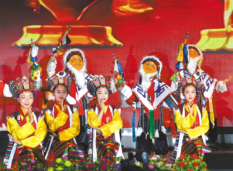 拉薩市少年宮的孩子們(men) 表演舞蹈——《吉祥藏戲》。記者 旦增蘭(lan) 澤 攝