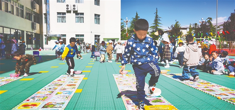 西藏軍(jun) 區機關(guan) 幼兒(er) 園兒(er) 童在做遊戲——“紙杯運小球”。通訊員 白曲 攝