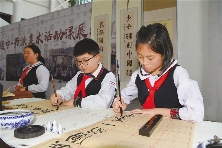 拉薩市實驗小學學生書(shu) 寫(xie) 書(shu) 法作品。記者 李洲 攝