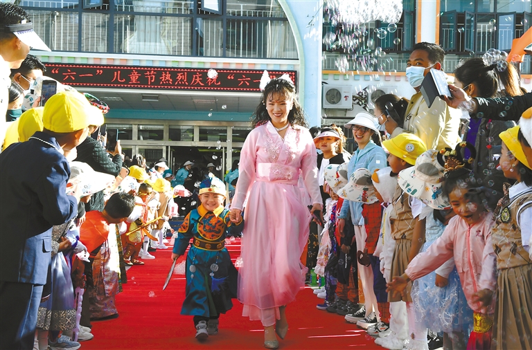 在第73個(ge) “六一”國際兒(er) 童節,全區各中小學、幼兒(er) 園等組織開展了內(nei) 容豐(feng) 富、形式多樣的慶祝活動,讓孩子們(men) 在歡樂(le) 有趣的活動中留下美好記憶、在快樂(le) 中茁壯成長。文藝匯演、親(qin) 子互動、普法講座……豐(feng) 富多彩的活動在全區各地“遍地開花”,無論是大型慶祝活動,還是社區的親(qin) 子活動,都傳(chuan) 遞著對孩子們(men) 快樂(le) 童年的祝福和關(guan) 懷。