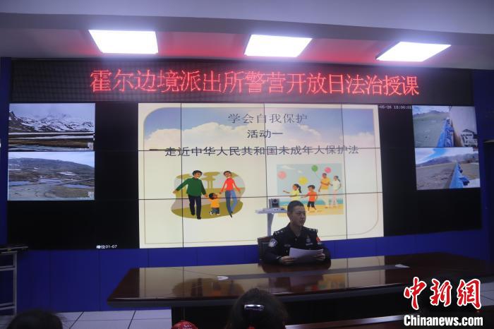 圖為(wei) 民警範鬱偉(wei) 為(wei) 學生講解未成年人保護法。 羅峰 攝