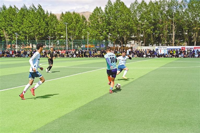 圖為(wei) 日喀則市首屆“珠峰杯”足球聯賽決(jue) 賽現場。記者 紮西頓珠 攝