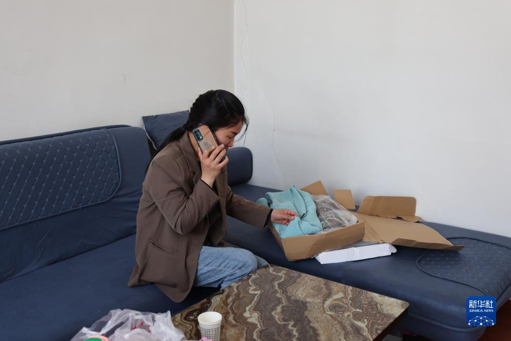 收到媽媽寄來的衣物後,潘紅培在與(yu) 媽媽通話。(受訪者供圖)