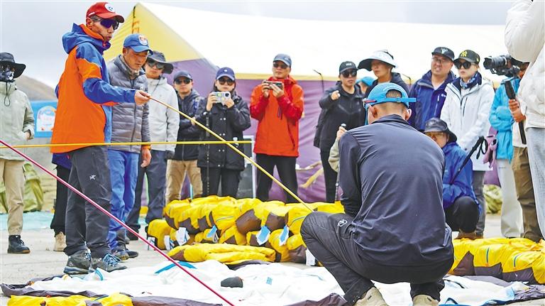 圖為(wei) 西藏自治區登山隊工作人員在搭建帳篷。記者 鄭璐 袁海霞 攝
