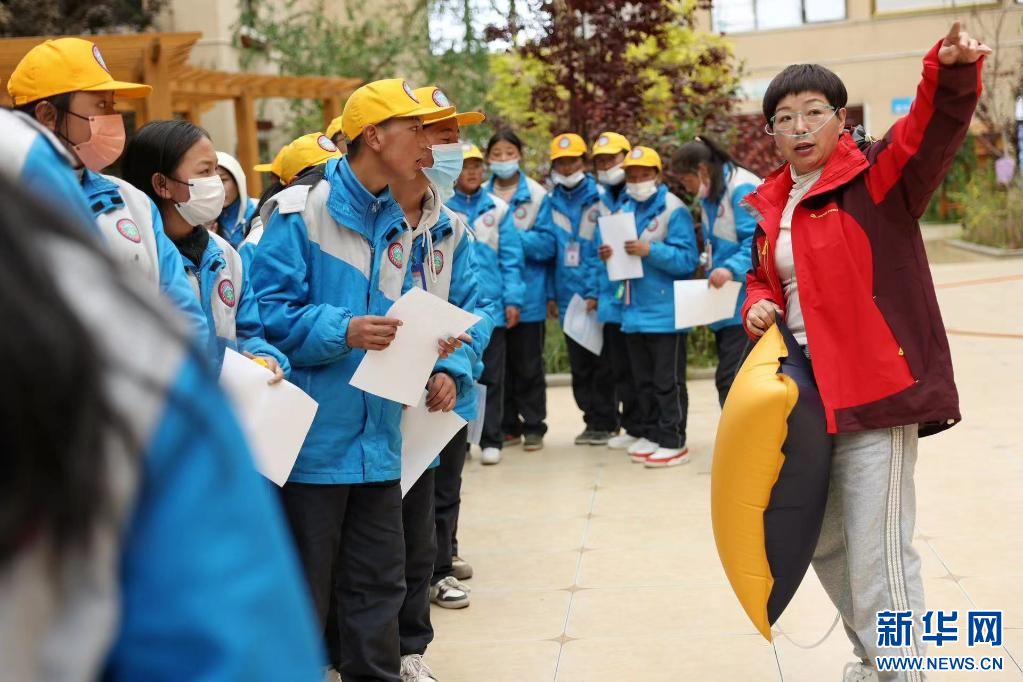 在西藏自治區那曲市色尼區第二中學(杭嘉中學),誌願者陳春玉正在引導學生排隊驗光(6月22日攝)。新華社發(趙穎碩 攝)