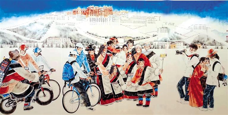 隨著一係列支持政策的持續推進和西藏各族兒(er) 女的團結奮鬥,西藏的經濟發展和民生水平都得到了大幅度提升。同時,關(guan) 注西藏發展現實、進行美術創作的藝術家日漸增多,一件件優(you) 秀美術作品應運而生,並且在全國重要展覽中精彩呈現,向人們(men) 全麵、立體(ti) 地展現了新時代西藏人民生活的美好圖景。2022年秋季在中國美術館展出的“第13屆中國藝術節:全國優(you) 秀美術作品展覽”中,有大量表現西藏民族風情和民生發展題材的美術作品,從(cong) 作品構思到藝術表現,體(ti) 現出鮮明的民族文化特色和民生繁榮景象,展現出美術創作者深植心底的鑄牢中華民族共同體(ti) 意識創作理念。