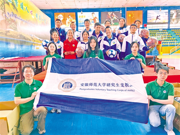 圖為(wei) 安徽師範大學第二十四屆研究生支教團成員在端午節為(wei) 山南市第二高級中學的學生們(men) 送去體(ti) 育用品。見習(xi) 記者 武沛濤 攝