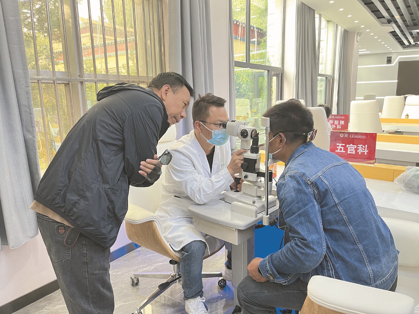 圖為(wei) 西藏大學附屬阜康醫院的醫生為(wei) 職工檢查眼睛。 拉薩融媒記者 大索朗曲珍攝