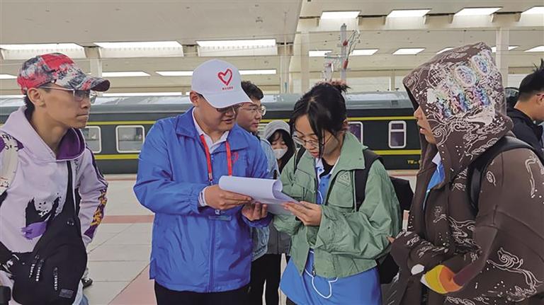 “到西部去、到基層去、到祖國和人民最需要的地方去。”7月24日,2023屆大學生西部計劃西藏專(zhuan) 項誌願者陸續抵藏報到。現場,共青團西藏自治區委員會(hui) 組織了前幾屆誌願者在火車站接站。“我是從(cong) 河南過來做誌願者的,在西藏已經2年了,一直在自治區經信廳上班。今天是過來接學弟學妹們(men) 的,幫助他們(men) 登記報到。”韓義(yi) 凡說。中午11點左右,火車進站,誌願者們(men) 陸續前來報到。“這是我第一次來西藏,還是以誌願者的身份,我會(hui) 好好工作,為(wei) 西藏的發展作出自己的貢獻。”來自天津的田克正說。