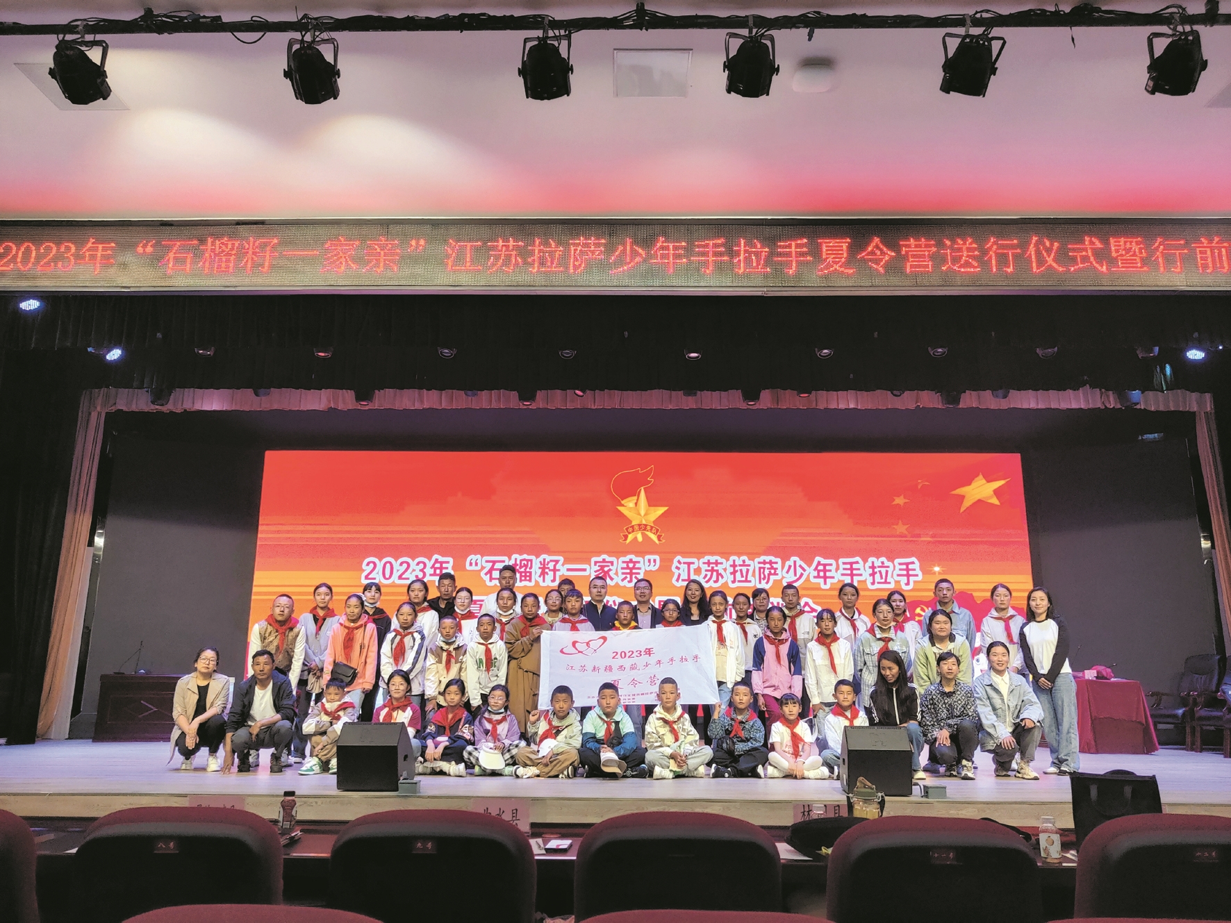 此次活動是2023年度江蘇省對口支援西藏拉薩市民族交流交往交融項目的子項目之一,是在江蘇省對口支援西藏拉薩市前方指揮部的關(guan) 心支持下開展的。據了解,為(wei) 期6天的夏令營課程安排合理,時間規劃細致,其間,師生將走進愛國教育基地感受曆史的厚重,走進科技館、博物館領略城市文化發展脈搏……四地少先隊員還將通過介紹家鄉(xiang) 、展示才藝等方式互相感受傳(chuan) 統文化,共同增長見識、砥礪意誌、深化友情。