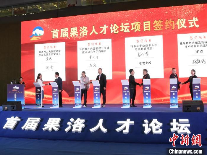 圖為(wei) 首屆果洛人才論壇項目簽約儀(yi) 式現場。果洛州委宣傳(chuan) 部供圖