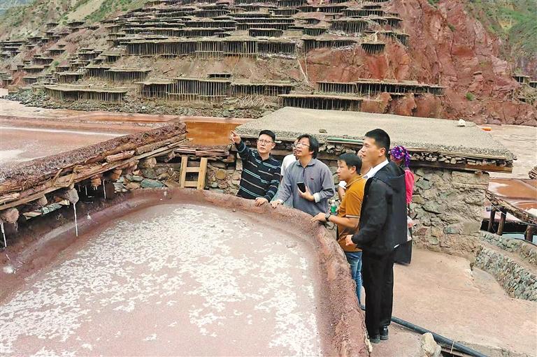 圖為(wei) 芒康古鹽田考察團調研加達鹽田。通訊員 劉哲含 攝
