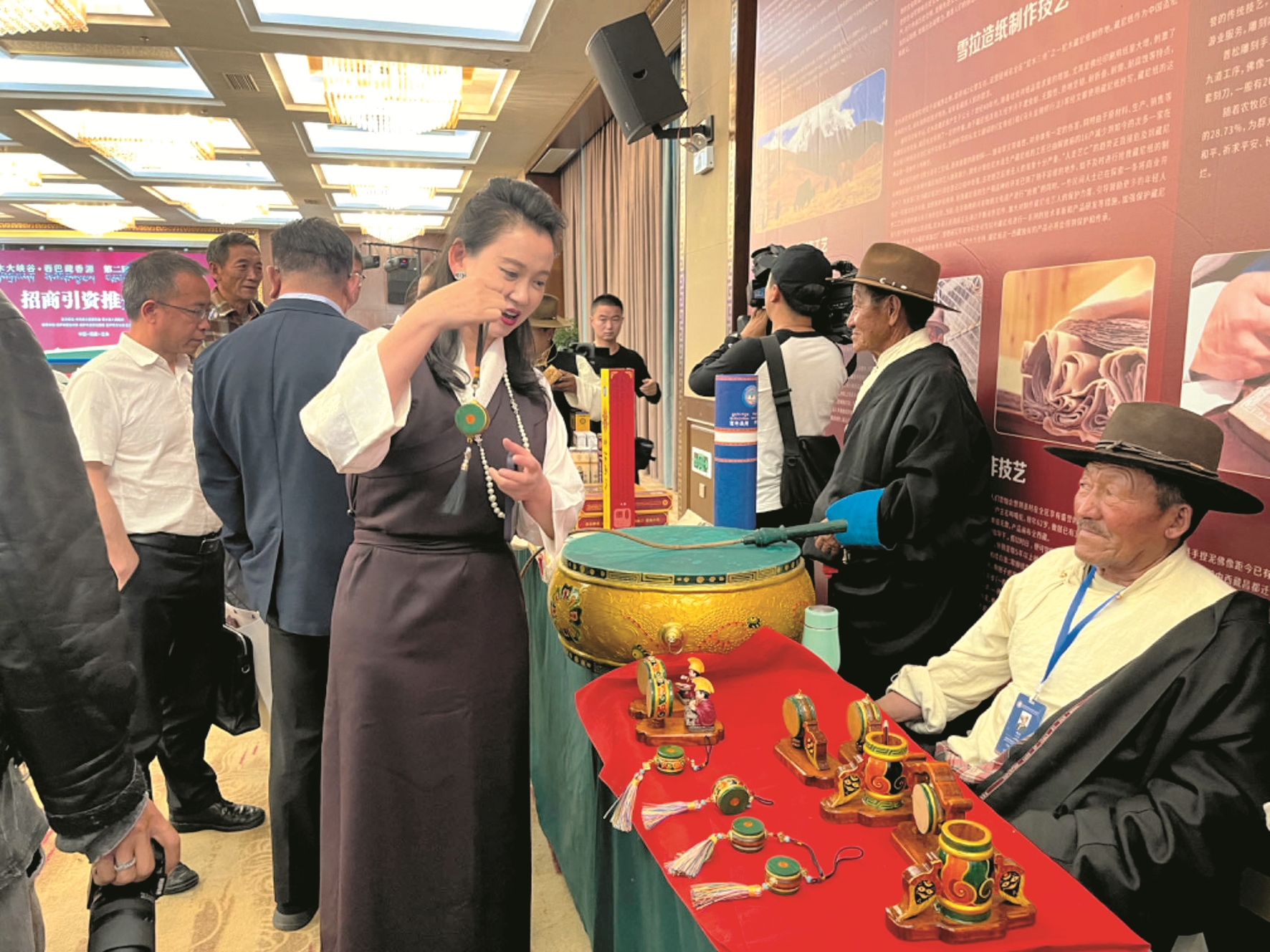 圖為(wei) 嘉賓正在參觀尼木縣特色產(chan) 品。拉薩融媒記者 莫瑞英攝