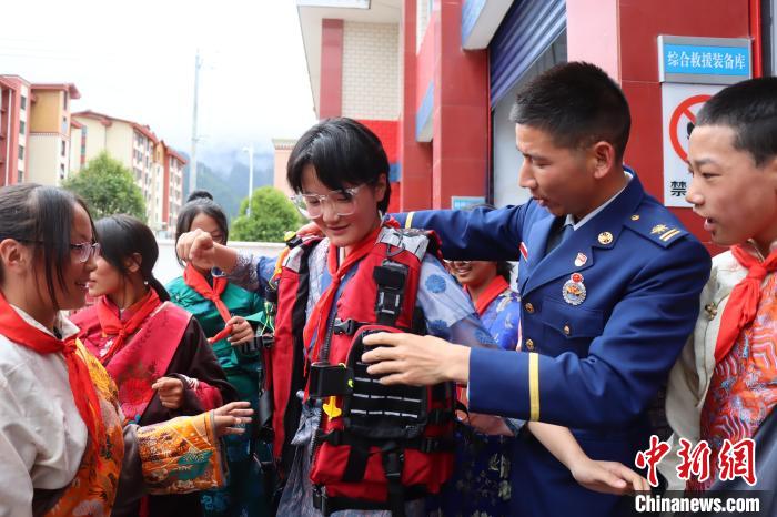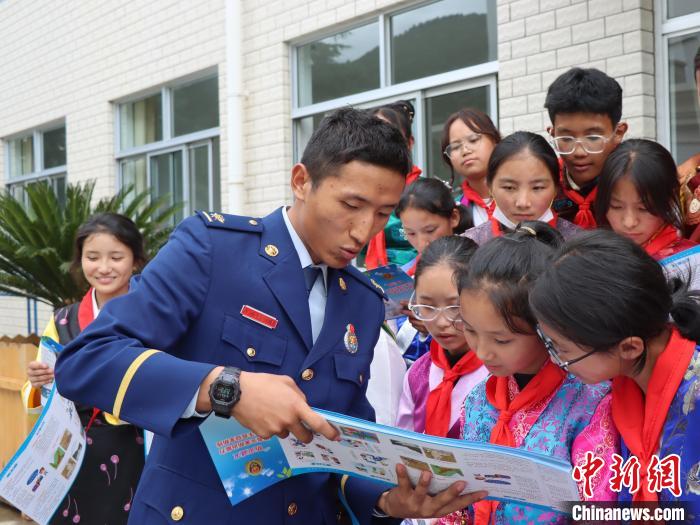 圖為(wei) 消防員正在為(wei) 學生普及防災減災知識。西繞拉翁 攝