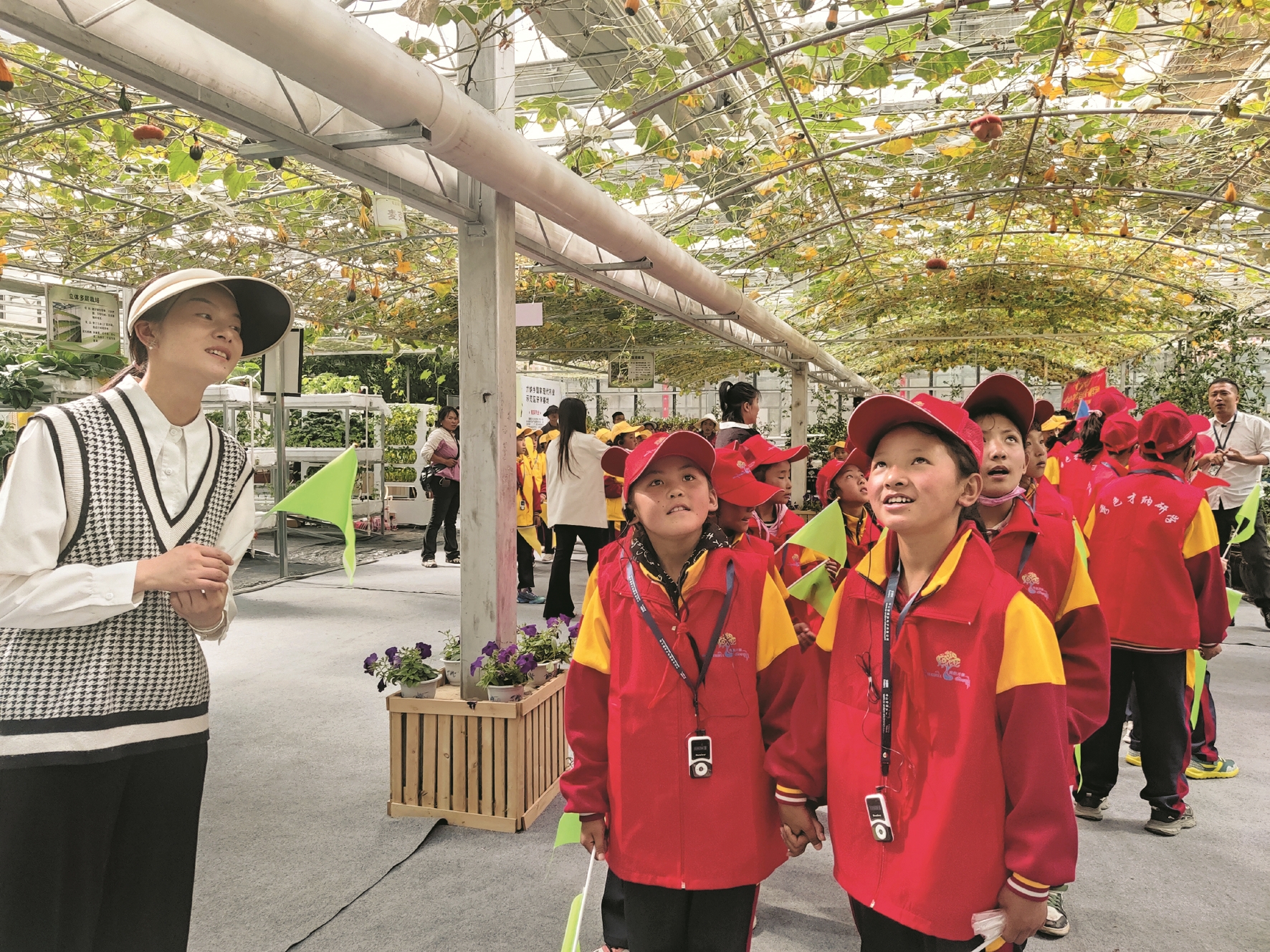 圖為(wei) 學生參觀才納鄉(xiang) 國家現代農(nong) 業(ye) 示範園區無土栽培展館。 拉薩融媒記者 餘(yu) 洋洋攝