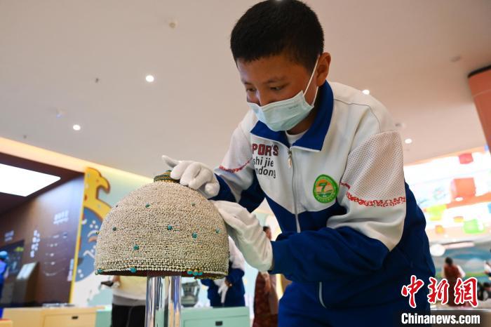 2022年7月,一名學生在西藏博物館觸摸體(ti) 驗仿真文物。中新社記者 趙朗 攝