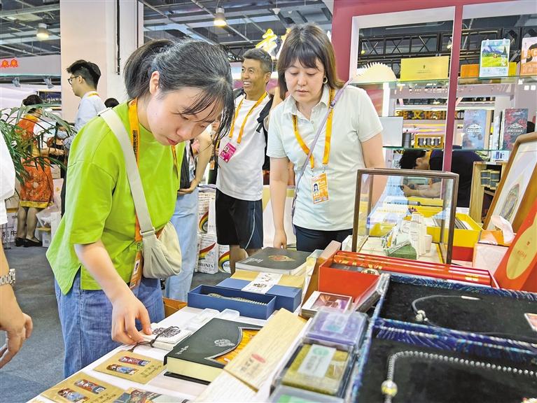 圖為(wei) 觀眾(zhong) 在服貿會(hui) 西藏展廳了解、挑選文創產(chan) 品。記者 張姝 攝
