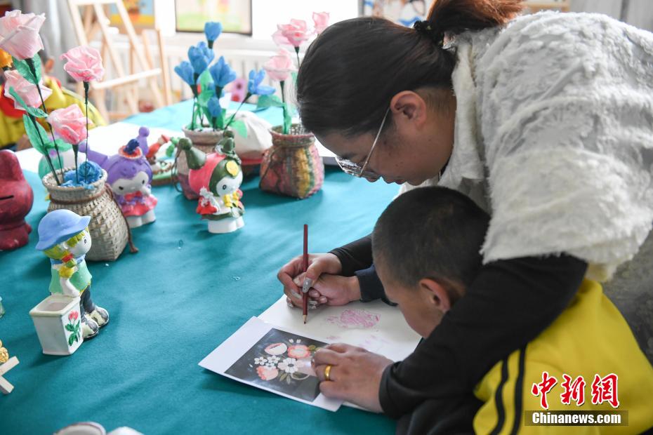 圖為(wei) 那曲市特殊教育學校老師教學生畫畫。貢嘎來鬆 攝