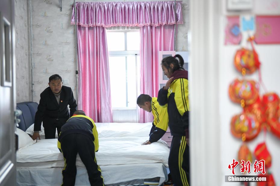 圖為(wei) 那曲市特殊教育學校學生學習(xi) 酒店服務。貢嘎來鬆 攝