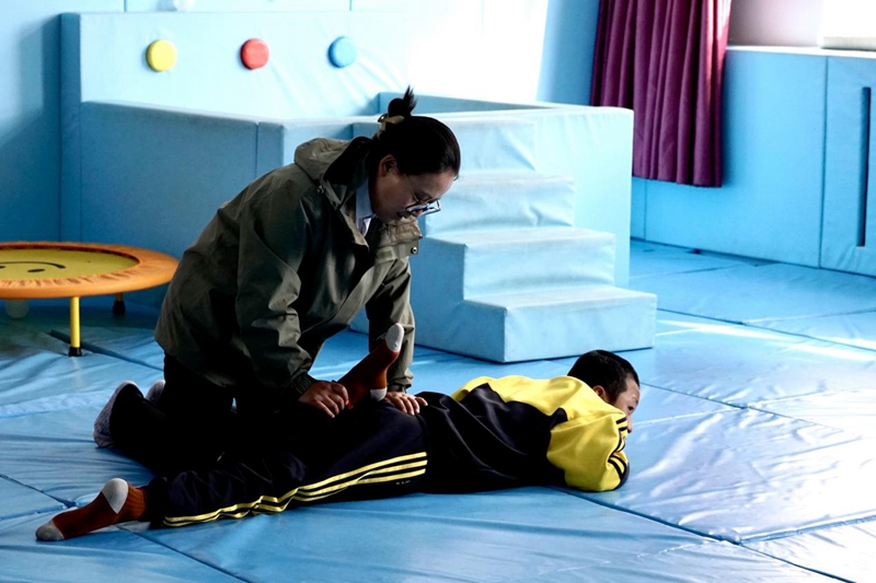 在海拔4500米的西藏那曲特殊教育學校裏,傳(chuan) 來了一組充滿矛盾的聲音——輕揚悠長的純音樂(le) 和重重敲擊桌麵的“咚咚”聲。