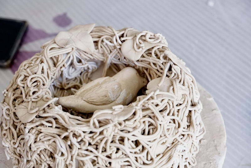 圖為(wei) 特殊學校一位聾啞學生的陶藝作品《溫馨的鳥巢》。