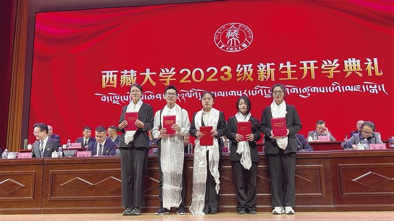 開學典禮上表彰了2022年度榮獲“三好學生”榮譽稱號以及榮獲“國家獎學金”“優(you) 秀學生獎學金”“特殊嘉獎”的學生。隨後,學校領導為(wei) 新生代表佩戴了西藏大學校徽。