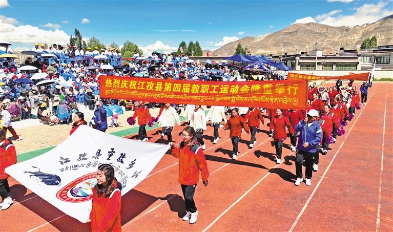 運動會(hui) 開幕式上,各方隊入場場景。記者 紮西頓珠 攝