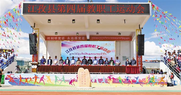 近日,日喀則市江孜縣教育係統舉(ju) 辦以“奮鬥教育路 建功英雄城”為(wei) 主題的第四屆教職工運動會(hui) 。本屆教職工運動會(hui) 比賽項目眾(zhong) 多,競賽類項目有男女100米跑步賽、男女4×100米接力賽;田賽類項目有男女鉛球、男女跳遠、男女一分鍾跳繩和女子一分鍾踢毽子比賽;傳(chuan) 統賽類項目有吉韌(藏式克郎球)、藏棋(國王與(yu) 大臣)、男女拔河比賽、秀茲(zi) (藏骰一男一女混合);趣味賽類項目有陸地龍舟(男女混合)、旋風跑(男女混合)、隔空取物(男女混合)、“乒”盡全力(男女混合);球賽類項目有男子足球和籃球、女子籃球比賽等項目。