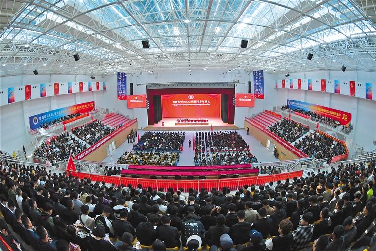9月7日,西藏大學2023級新生開學典禮在大學生創新創業(ye) 活動中心舉(ju) 行。3000餘(yu) 名新生懷揣著青春理想,開啟人生新旅程,聆聽大學第一課。