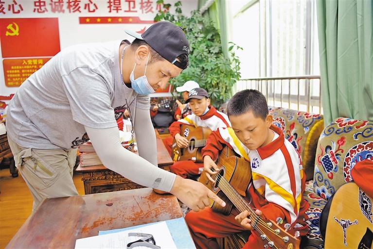 拉薩市第四中學的老師指導學生學習(xi) 吉他彈奏。記者 王敏 攝