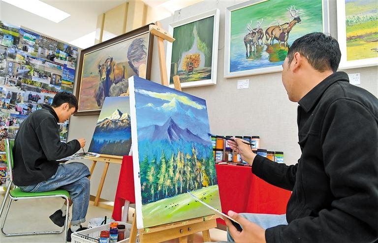 圖為(wei) 西藏職業(ye) 技術學院的學生在畫油畫。記者 王敏 攝