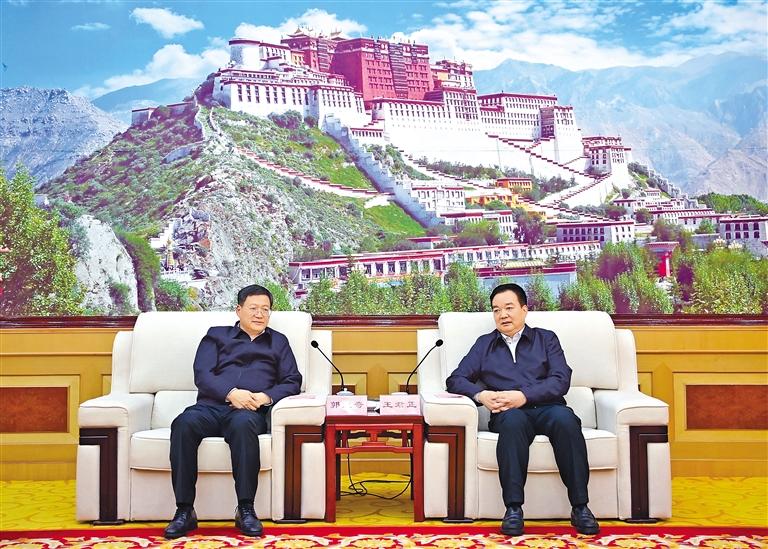 11日,西藏自治區黨(dang) 委書(shu) 記王君正在拉薩與(yu) 中央和國家機關(guan) 工委分管日常工作的副書(shu) 記郭文奇一行座談。