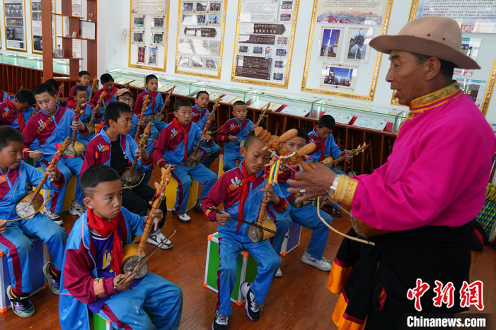 待弦子興(xing) 趣班30多名學生坐下,定主如往常一樣,首先帶領學生們(men) 校準弦子的高低音,接著才是傳(chuan) 授新曲子。他要求學生不僅(jin) 會(hui) 拉奏樂(le) 曲旋律,還要能吟唱歌詞,“地處高高的雪山,菩提樹兒(er) 把根紮,賓客是花白犛牛,菩提樹兒(er) 長得高,犛牛呀膘肥體(ti) 壯,菩提樹兒(er) 葉茂盛……”