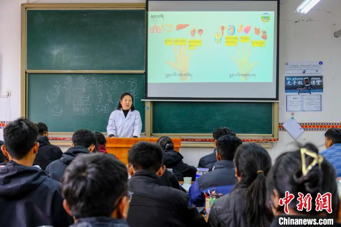 10月12日,西藏藏醫藥大學一課堂上,老師向同學們(men) 講述《四部醫典》中脈診相關(guan) 內(nei) 容。中新社記者 江飛波 攝