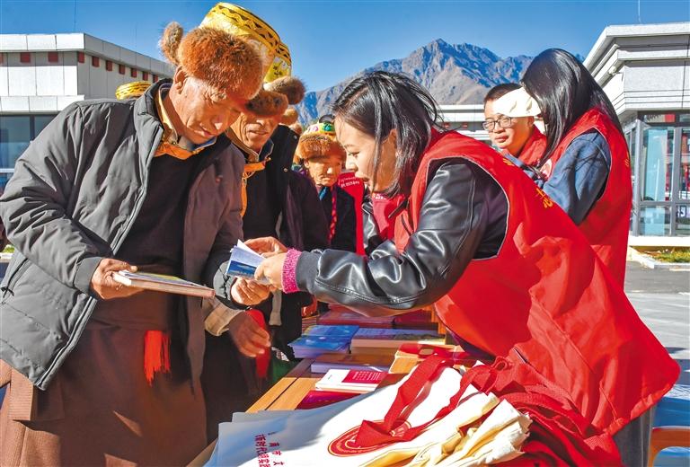 日前,山南市新時代文明實踐誌願者來到乃東(dong) 區澤當大道,圍繞群眾(zhong) 關(guan) 心關(guan) 注的社區養(yang) 老政策、特困人員救助和最低生活保障政策、防範養(yang) 老詐騙和電信詐騙等相關(guan) 政策法規進行現場宣講和解讀,並發放宣傳(chuan) 資料。