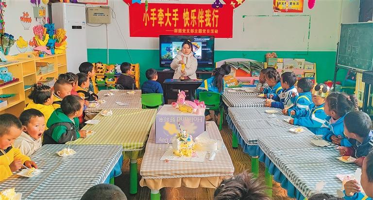 近日,山南市措美縣群團黨(dang) 支部在該縣古堆鄉(xiang) 帕倉(cang) 村幼兒(er) 園開展“小手牽大手,快樂(le) 伴我行”主題黨(dang) 日活動,與(yu) 孩子們(men) 一起講紅色故事、唱兒(er) 歌、做遊戲、吃蛋糕,為(wei) 孩子們(men) 健康成長加油助力。