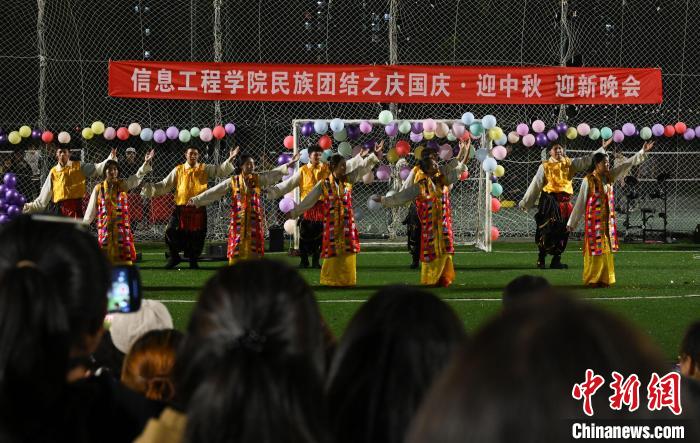 圖為(wei) 2023年9月,藏族學生在迎新晚會(hui) 上表演節目。趙朗 攝