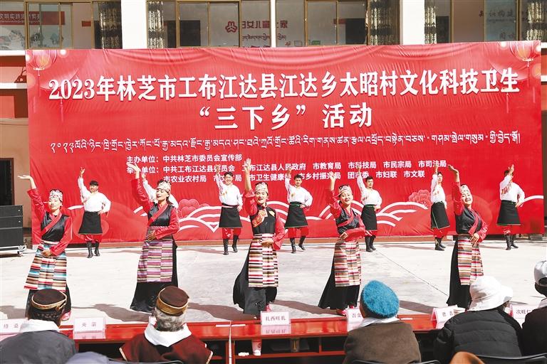 近日,由林芝市委宣傳(chuan) 部牽頭在工布江達縣江達鄉(xiang) 太昭村聯合舉(ju) 辦林芝市文化科技衛生“三下鄉(xiang) ”活動。林芝市、工布江達縣兩(liang) 級文藝工作者為(wei) 現場群眾(zhong) 送上的《續寫(xie) 盛世》《栢榭》等精彩節目和哈呼曲藝社帶來的語言類節目《學習(xi) 國家通用語言文字》,深受群眾(zhong) 喜愛,節目中還穿插黨(dang) 的二十大精神等相關(guan) 知識問答環節,在場群眾(zhong) 積極參與(yu) ,踴躍回答,現場氣氛十分活躍。