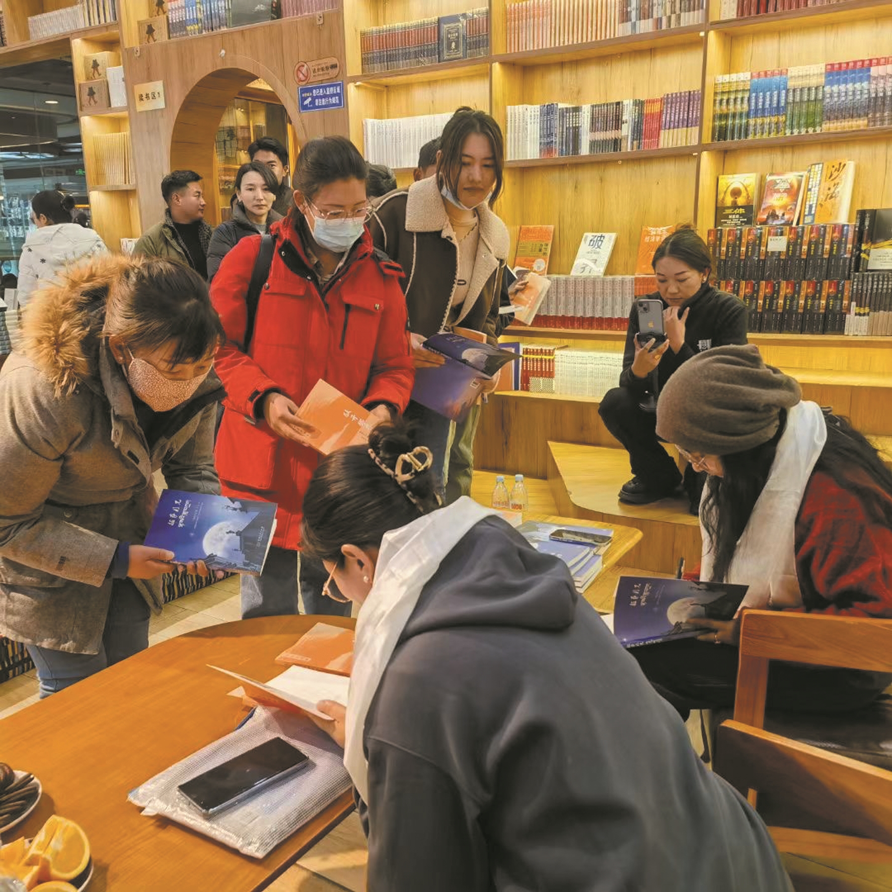 圖為(wei) 在讀書(shu) 分享交流會(hui) 現場,作家納穆卓瑪與(yu) 達娃央金在為(wei) 讀者簽名。 拉薩融媒記者 滿文妍攝