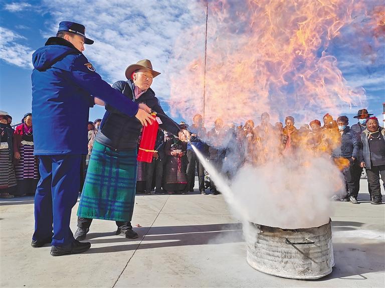 活動中,隊伍各級積極製作藏漢雙語宣傳(chuan) 彩頁、海報、宣傳(chuan) 冊(ce) 、宣傳(chuan) 袋等“消防禮包”80餘(yu) 萬(wan) 份,聯動消防誌願者通過“走街串巷”的形式深入轄區“九小場所”、沿街門店、居民樓院等廣泛發放,並采取“麵對麵”宣傳(chuan) 講解、“一對一”互動交流等方式,向廣大群眾(zhong) 傳(chuan) 授防火基本常識,教授如何正確使用滅火器、如何撲救初起火災、如何逃生自救等。在開展宣傳(chuan) 的同時,“火焰藍”和“誌願紅”還進村入戶,幫助群眾(zhong) 查找火災隱患,講解隱患存在的嚴(yan) 重危害性,切實提高群眾(zhong) 的消防安全意識和自防自救能力。
