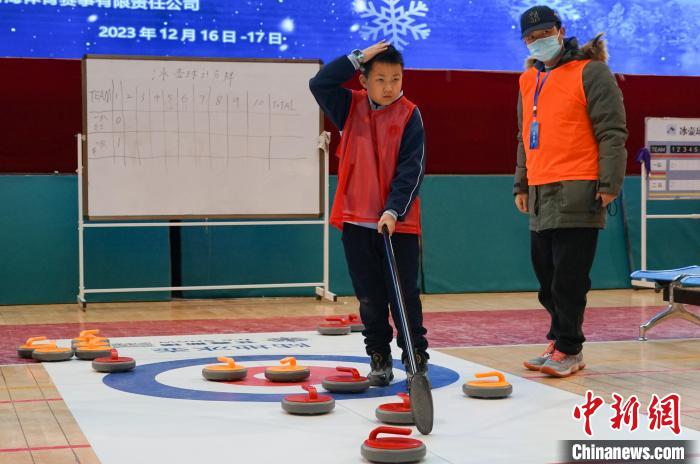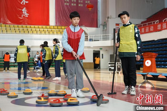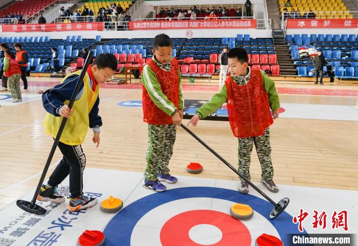 圖為(wei) 在青海民族大學,校園組選手正在進行陸地冰壺項目的比賽。馬銘言 攝