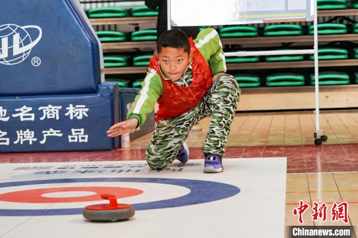 圖為(wei) 在青海民族大學,一名校園組選手在陸地冰壺比賽中投壺。 馬銘言 攝