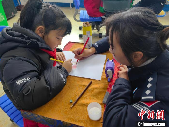 圖為(wei) 玉麥邊境派出所民警與(yu) 小朋友一起畫畫。紮西根培 攝