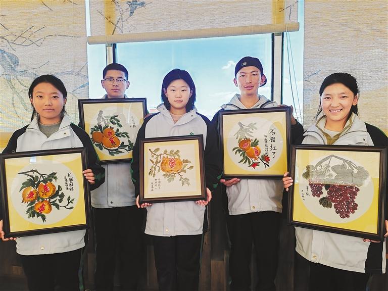 學員尼瑪次仁和格桑旦增通過寫(xie) 意花鳥的創作,感受到了中國畫的魅力。他們(men) 的作品《石榴紅了,籽籽同心》在北實宏誌班赴京遊學中作為(wei) 禮物,贈送給北京友好學校。