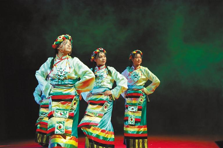 圖為(wei) 學生表演藏族傳(chuan) 統舞蹈。