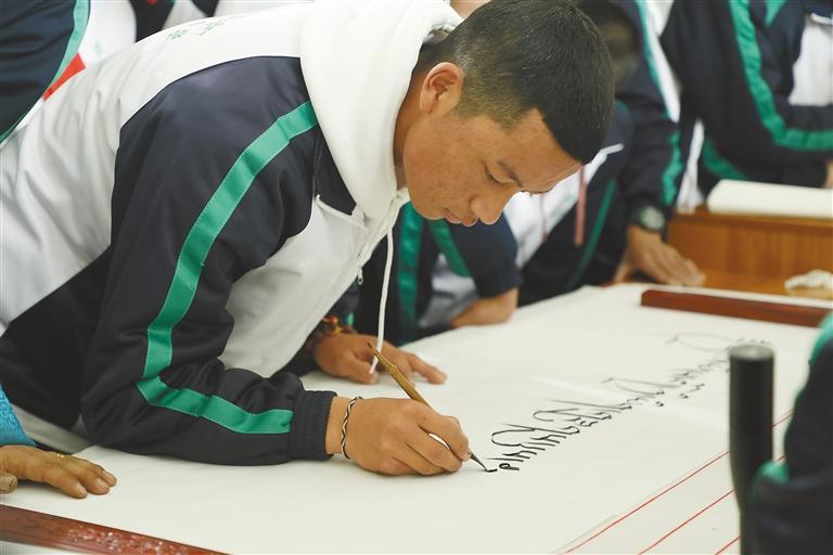圖為(wei) 拉薩北京實驗中學舉(ju) 行藏文書(shu) 法比賽。